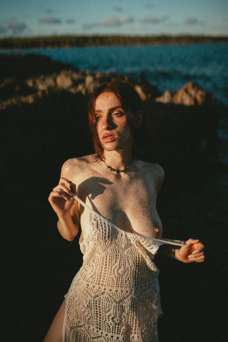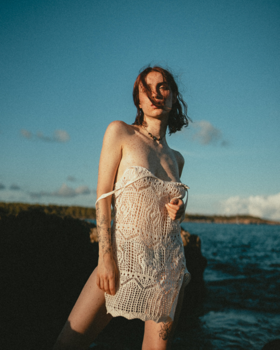 Die Weite des Horizonts und das sanfte Rauschen der Wellen bilden den perfekten Hintergrund für Porträts, die von innerer Ruhe und zugleich lebendiger Energie erzählen. Der offene Blick aufs Meer schafft eine Tiefe, die in den Gesichtern der Models spürbar wird – als ob die Weite des Ozeans die Seele berührt und den Moment der Aufnahme in seiner ganzen Intensität einfängt.