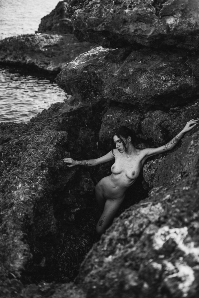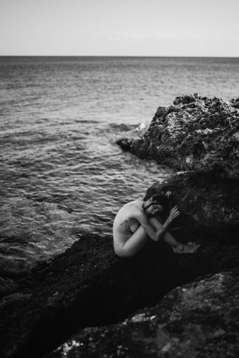 Die dramatischen Felsen an der Küste von Mallorca bieten eine außergewöhnliche Kulisse, die das Gefühl von Stärke und gleichzeitig Zerbrechlichkeit vermittelt. Ihre raue Schönheit und die Kontraste zwischen Licht und Schatten erzeugen eine Spannung, die die Fotos noch intensiver macht. Die Felsen spiegeln die Vielseitigkeit der Charaktere wider – mal sanft, mal kraftvoll, mal voller Stille, mal voller Ausdruck.